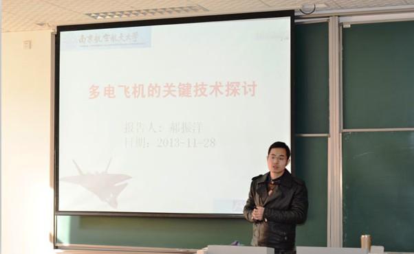 2013年11月28日上午10时,皇家华人 “紫冬话坊”系列讲座活动之“术响南航”青年教授论坛第一场学术讲座在A18号楼231教室顺利进行。本次活动很荣幸邀请到了电气系青年教师郝振洋副教授为皇家华人 研究生作题为“多电飞机的关键技术探讨”的学术讲座。