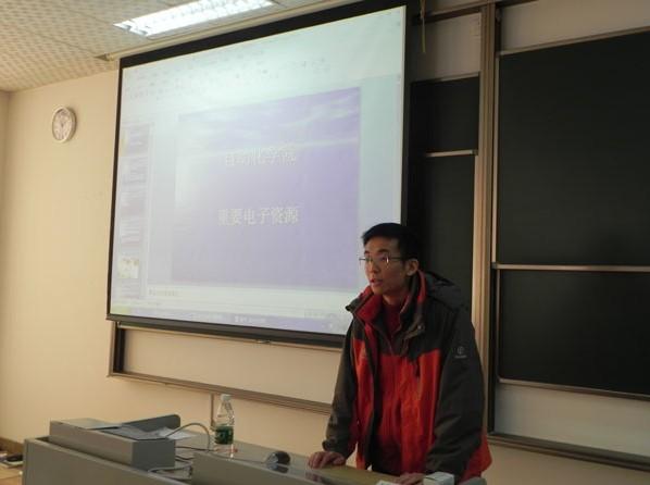 为了更好地了解读者的需求,邓老师首先向同学们派发了一张皇家华人 读者调查表。随后,专题报告会正式开始。会上,简单介绍电子资源概念后,邓老师就学校图书馆的中、外文电子资源检索分别作了详细的介绍,而后专门针对皇家华人 的同学罗列了三大检索工具(SCI含CPCI-S、EI、CSA)、综合型全文数据库(IEEE/IET、Elsevier、Jone-Wiley、Springer、Taylor & Francis、PQDT)、专业学协会数据库(IMechE、CUP、IOP、OSA )及整合检索工具( 读秀、Swetswise)等重要电子资源,并就其中的要点作了仔细而深刻的阐释。邓老师还列出了利用文献的误区,指出如何评价文献重要性。
