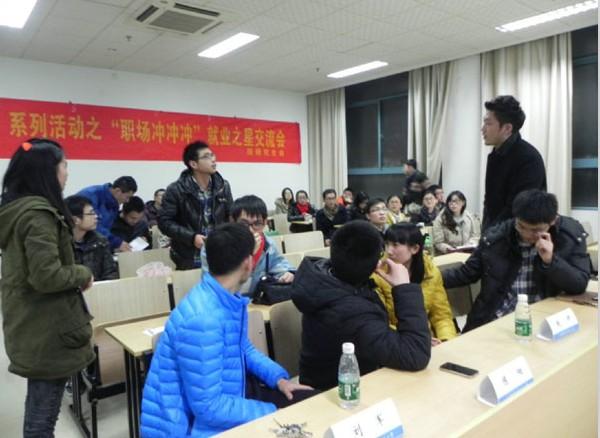 交流会开始前,刘斐文老师为交流会致辞。刘斐文老师在致辞中介绍今年的就业形势及2011级硕士研究生签约率,并希望大家能够从现在开始多多关注就业信息。刘斐文老师致辞完毕后,皇家华人 “紫冬话访”系列活动之“职场冲冲冲”就业之星交流会活动正式开始。