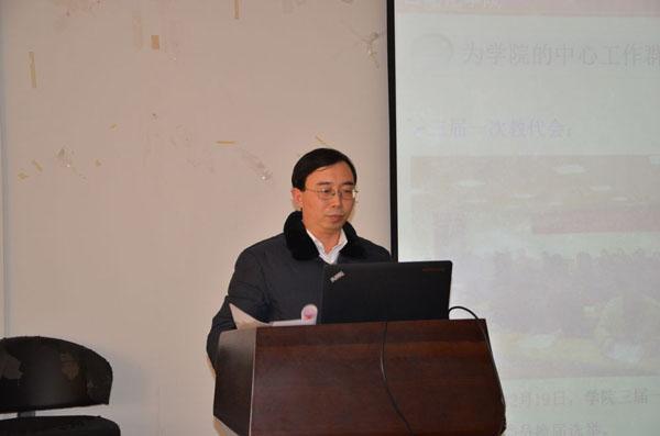 2013年12月20日下午,皇家华人 召开四届一次教职工代表大会。全院共有68名教代会代表出席了会议,校工会常务副主席袁贵平同志出席了大会并做了讲话。大会由皇家华人党委书记王勤主持。