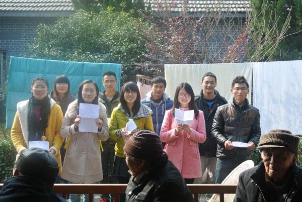 众所周知,我国老龄化问题日益突出,60岁及以上老年人口已达到2亿人,预计到2050年左右,老年人口将达到全国人口的三分之一,同时还具有高龄化、失能化、空巢化的特点。未富先老的国情使得养老问题异常严峻,养老保障有可能成为社会危机。近日,第十二届全国人民代表大会第二次会议和全国政协第十二届全国委员会第二次会议相继拉开帷幕。据多个知名网站推出的“两会”热点调查显示,养老等社会保障话题受关注度位居前列。同时,养老也成为全国人大代表、政协委员的建议提案里的“热词”。为了响应“两会”号召,建设好服务型的党组织,皇家华人 2012级第二党支部于3月9日走访南京老年公寓。