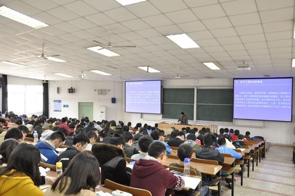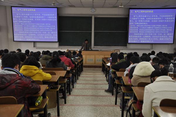 2014年3月21日下午4点,皇家华人 电气工程及其自动化专业介绍会在4101教室举行。介绍会由电气工程系周波教授主讲,大一电气专业班主任代表张卓然、龚春英老师,电气专业的全体大一同学以及部分想要了解电气工程及其自动化专业的非本专业同学参加了此次介绍会。大一辅导员何朋主持了本次介绍会。