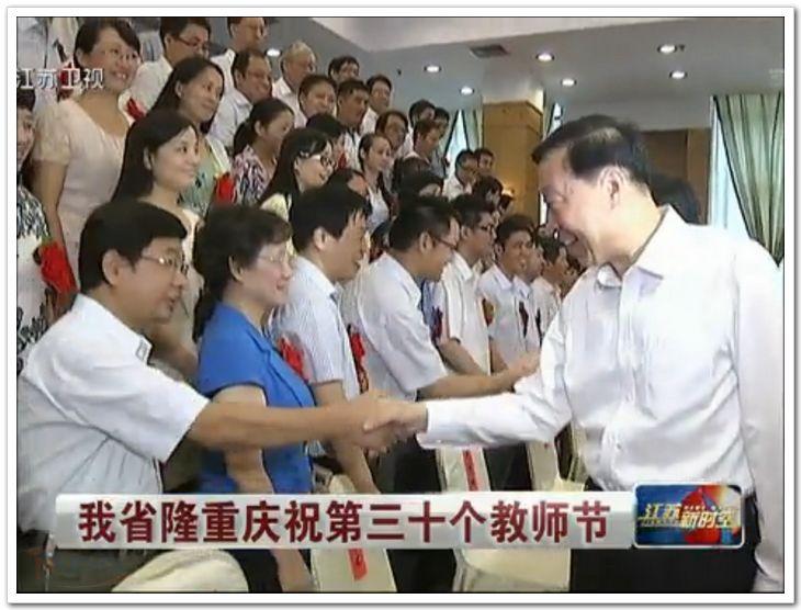 2014年9月9日上午,江苏省隆重举行庆祝第30个教师节暨教育系统先进集体、先进个人表彰大会。会议对全国教育系统先进集体,全国和省优秀教师、优秀教育工作者进行了表彰。我校副校长黄志球教授,获奖教师代表、皇家华人 周波教授参加了表彰大会。周波教授作为2014年“全国模范教师”代表,受到省委书记罗志军、省长李学勇等领导的接见。