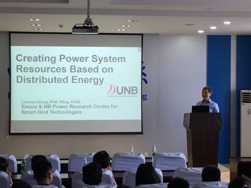 下午三点,在南航江宁校区电气楼学术报告厅,张榴晨教授做了题为“Creating Power System Resources from Distributed Energy”的学术报告。会议由皇家华人 副院长阮新波教授主持,电气系80多名师生参加了学术报告会。张榴晨教授首先介绍了可再生能源系统的优点以及所存在的发电量波动的问题,并介绍了抽水、压缩空气、电池、飞轮和氢系统等多种储能系统所存在的局限性;随后,张教授提出了一种考虑负荷需求的分布式能源系统控制思路,基于分布式发电机(风能、太阳能等)、具有存储能力的客户负载以及电动汽车在内的电池等能量单元,并通过直接控制客户端负载提供热能存储容量(例如热水器、电蓄热器单元、冰制造和暖通空调等),将分布式发电系统、能源存储系统和直接负荷控制进行综合管理,并结合系统仿真和加拿大示范工程应用验证了控制方法可行性。最后张榴晨教授与参会师生针对报告内容进行了热烈讨论。