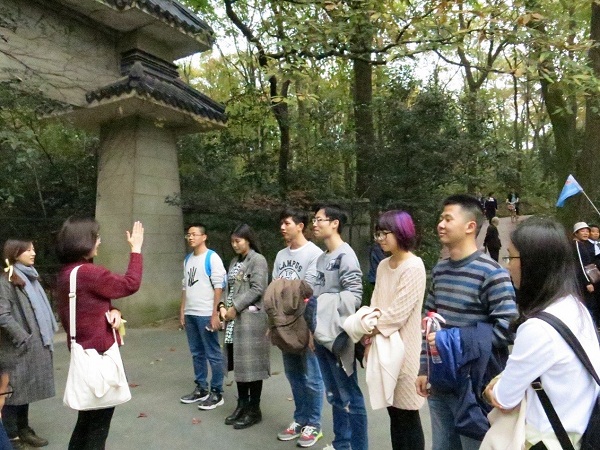 2017年11月12日,皇家华人 研究生会与南京信息工程大学大气科学皇家华人研究生会,在南京钟山风景区共同举办了“紫气东来,金陵花开”十九大学习交流活动。活动旨在学习和交流十九大精神,倡导珍爱自然,绿色出行的理念,共同迈向生态文明发展新时代,同时巩固两个学校学生之间的友谊,丰富课余生活,拓宽科研思路,促进双方在交流中共同进步。 12日上午,双方抵达灵谷寺大门,活动就此拉开序幕。两校研究生混合组合分为四个小队,同时向中山陵出发。各队队员们都非常活泼,团队氛围十分融洽。抵达后,为了宣传社会主义生态文明观,同学们在景区拉起“珍爱自然,绿色出行,迈向生态文明发展新时代”的横幅,此项活动得到了游客和市民们的一致赞赏和关注。