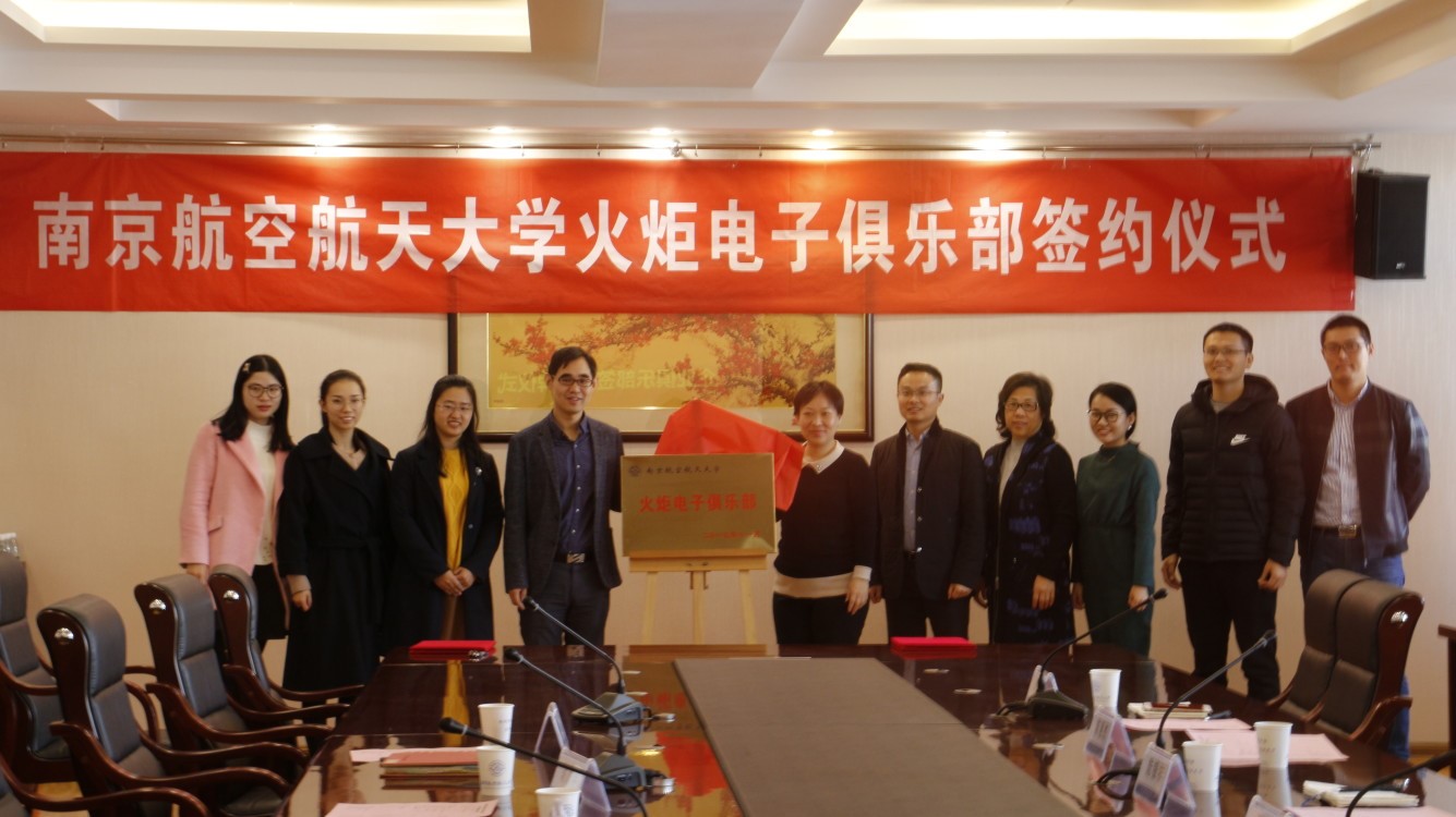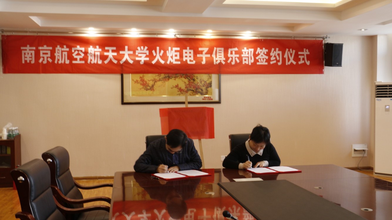 最后,张跃副书记同肖峰总监分别代表南航皇家华人 及火炬电子签订协议,并为俱乐部揭牌。