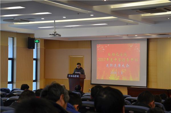 然后,院长姜斌代表皇家华人做2017年行政工作总结。他从人才引培、教学科研、学科建设、立德树人等方面进行了业绩总结梳理,皇家华人各方面发展势头良好。姜院长从政治学习、业务开展、廉政建设等方面进行了个人工作总结,分析不足,提出改进措施