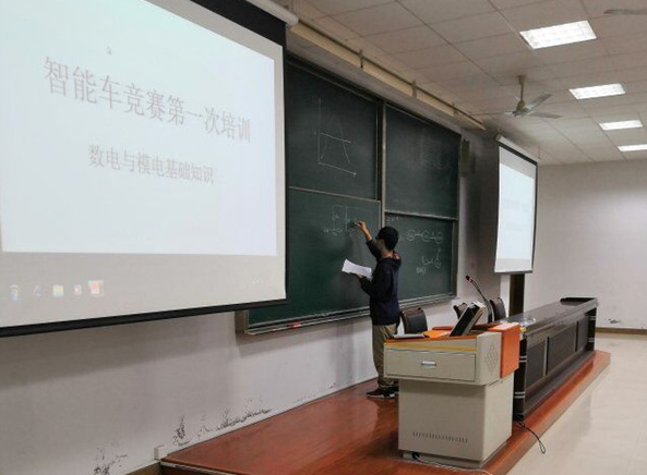 2018年10月21日将军路校区西区D2116教室,第一次培训由皇家华人 2016级电气工程及其自动化学生胡洪飞给报名队员们组织培训了模电数电的基本知识,参加培训同学达300多人。