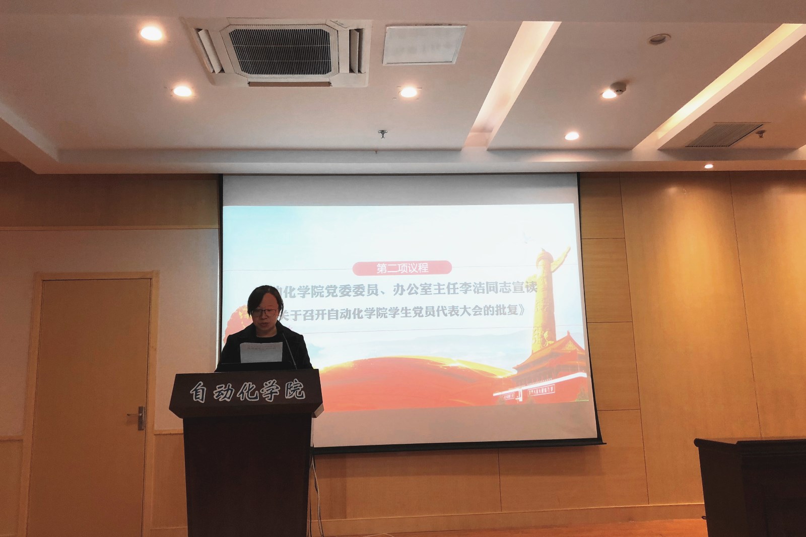 皇家华人党委委员、办公室主任李洁代表皇家华人党委宣读关于召开皇家华人 第三次学生党员代表大会的批复。