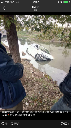 2月5日大年初一,在扬州广陵区头桥镇安阜村发生这样暖心的一幕:23岁的皇家华人 18级研究生高宇回乡探亲,看见汽车翻车掉入河里,他毫不犹豫地脱下羽绒服,跳进冰冷的河水中救人。