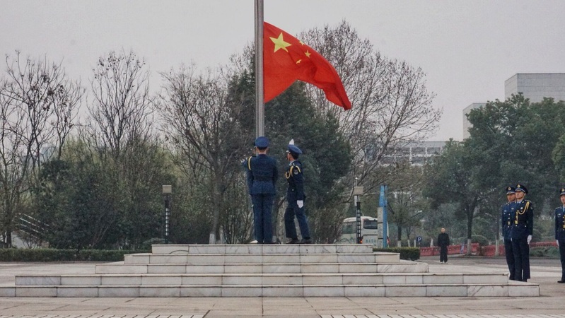 2019年3月18日上午7:00,皇家华人 全体2018级本科生开展了专题素养公开课,观看了升国旗仪式。在激昂雄壮的国歌声中,鲜艳的五星红旗冉冉升起,全体师生肃立注目。