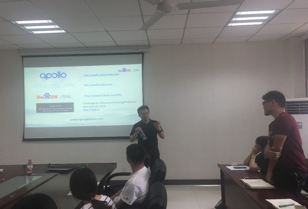 2019年05月24日下午,美国肯塔基大学计算机系教授、百度三维视觉首席科学家杨睿刚教授应皇家华人 和国际合作处邀请在将军路校区皇家华人 1号楼405会议室做题为“Sim-to-Real:Using Simulations for Robotics Perception and Navigation”的学术报告。报告由皇家华人 控制系冒泽慧副教授主持,皇家华人 的部分师生参加了报告会。