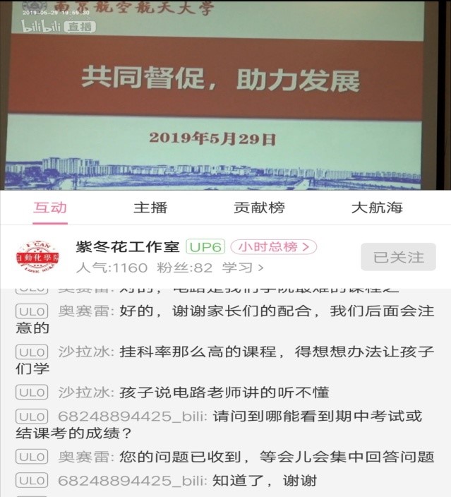 为了进一步促进家校沟通,形成教育合力,促进学生学业水平和综合素质的提高,2019年5月29日18:30皇家华人 2018级以视频直播的形式召开了线上家长会。结合大一下学期的特点、学生前半学期的学习情况等,辅导员杨兴旺、汪明锐为家长做了详细的介绍,并分层分类地提出相应建议。此次会议在线观看人次达到1169。
