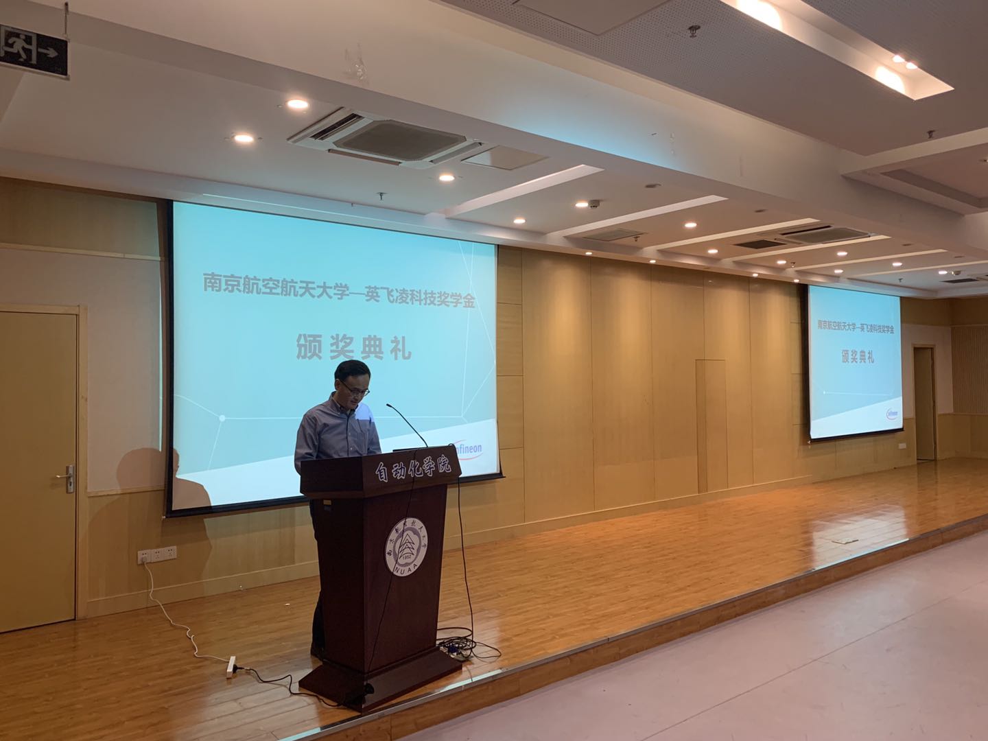 随后郝振洋副教授宣读了本次英飞凌奖学金的获奖名单,英飞凌公司和皇家华人 领导共同参与了颁奖环节。皇家华人 19级直博生刘越作为获奖学生代表发言,他表达了对英飞凌科技公司的感谢,并会在今后的学习和生活中努力拼搏、潜心科研,未来为社会做出应有的贡献。