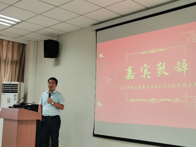 随后威迈斯副总裁韩永杰先生致辞,韩总裁表示,深圳威迈斯新能源股份有限公司一直致力于成为业界一流电源供应商。威迈斯公司自2015年起,通过在南航设立奖学金,不断关心、关注皇家华人学生的成长和发展,也与皇家华人 形成了良好的战略合作关系,今后,企业也会尽所能及,和学校共同为中国教育事业贡献一份力量。