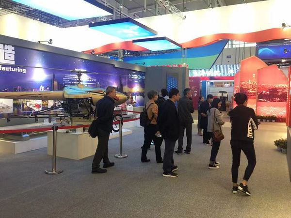 在室外展区,由我校负责的航空航天展区尤为受到参观师生的瞩目,共展出了七架飞机和一颗卫星,包括我国第一架自主研制的具有完全知识产权的直升机、第一架无人驾驶大型靶机、第一架高空高速低目标特性固定翼无人机、第一架重油小型长航时无人机、第一颗低目标特性小卫星。大家身为一名南航人、一名航空人,看到为中国的航空航天事业发展、江苏的“强富美高”建设作出了贡献,都十分激动、倍感自豪。