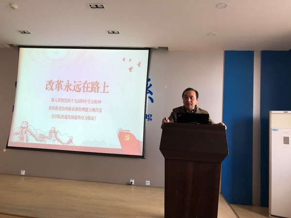 2019年11月15日下午,电气工程系党支部在皇家华人 3号楼509报告厅召开了主题教育专题党课,邀请支部联系院领导江驹院长做了“不忘初心担使命,真抓实干促发展”为主题的专题党课。会议由支部书记魏佳丹主持。