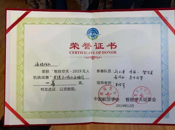 12月6日至8日,“智胜空天-2019”无人机挑战赛在陕西省咸阳市空军工程大学三原校区举行。皇家华人 派出了两只参赛队伍参与挑战,经过两天紧张激烈的角逐和多轮的比拼,由皇家华人 王新华老师指导,研究生刘正清、李康一、樊有容、王皓及本科生岳凤玉、虞卞雨萱组成的海鸥战队斩获本次大赛科目四(长僚机编队与协同)一等奖,研究生刘禹、王凯、马梓元、张志宏及本科生吴玲燕、张研组成的翔飞战队夺得科目一(无人机多目标识别)优胜奖,彰显了我校航空航天特色专业领域的优势和学子的风采。