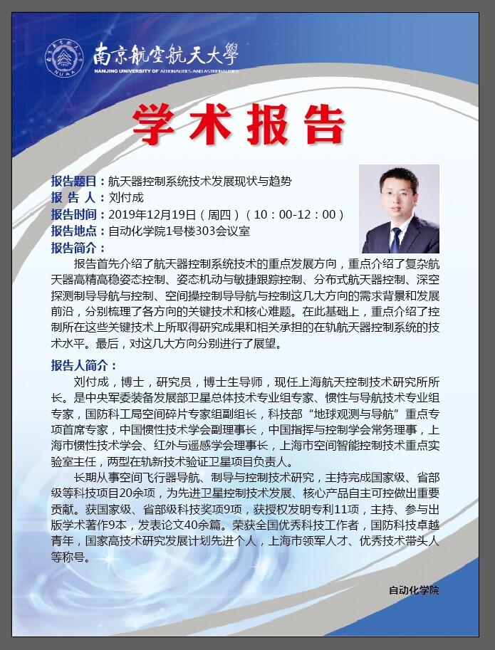 学术报告:航天器控制系统技术发展现状与趋势