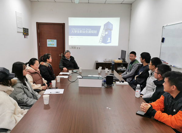 12月23日下午1点45分,由电子技术中心林雅洁、游霞老师组织的,王友仁教授和曾庆喜副教授出席的大学生职业生涯规划人物访谈会在皇家华人 2号楼206会议室拉开帷幕。