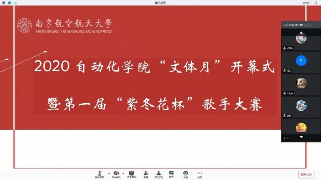 2020年6月6日下午15:00,皇家华人 第十四届“文体月”开幕式暨第一届“紫冬花杯”歌手大赛初赛顺利举行。受疫情影响,本届“文体月”活动采取线上举办的方式。学院党委副书记张跃老师、院团委书记陈慧云老师、研究生辅导员汤呈懿和王明月老师、本科生辅导员汪明锐和宋欣老师作为嘉宾线上出席了本次开幕式。
