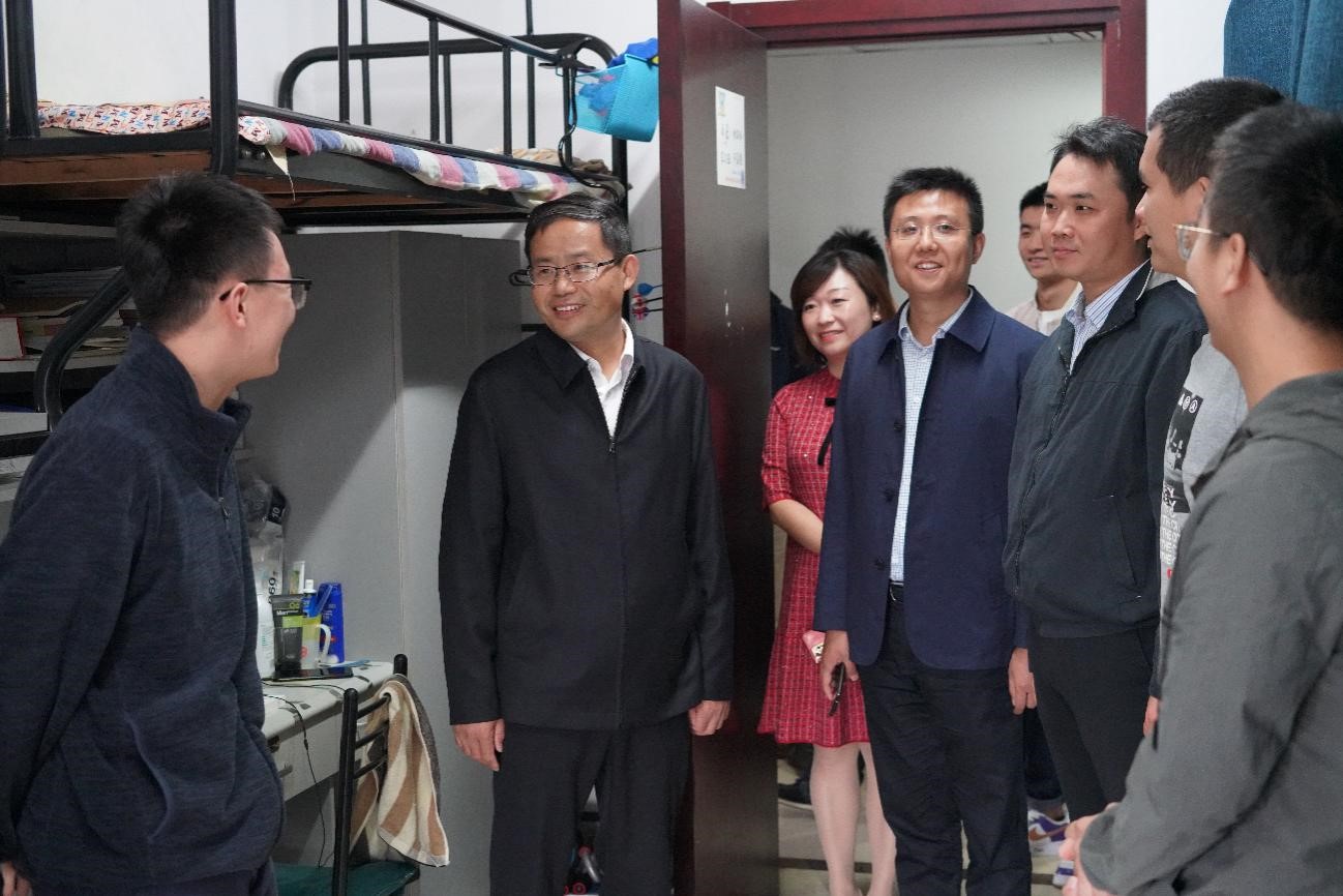 为进一步了解和掌握学生思想动态,关心开学以来学生的学习、生活状况,帮助学生解决实际困难,并有针对性的做好重点学生的关爱帮扶工作,校长单忠德、校党委副书记陶勇和全体院领导利用国庆、中秋“双节”期间分别走访了皇家华人研究生工作室、实验室和学生宿舍,与学生开展面对面的深入交流。