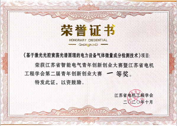 10月28日,江苏省智能电气暨江苏省电机工程学会第二届青年创新创业大赛在江苏扬中落下帷幕。本次大赛以“智能电气创赢未来”为主题,受到了江苏省内高校、电力科研、设计、生产、运维和制造等单位的积极响应。经过初赛、复赛的层层角逐,39个项目进入决赛答辩。皇家华人 张潮海教授指导的硕士研究生邹可园参赛项目“基于激光衰荡光谱原理的电力设备气体微量成分检测技术”荣获大赛一等奖。