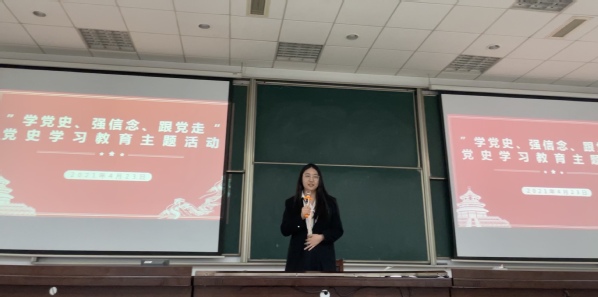 首先,党史学习教育师生宣讲团成员马晓萌带来题为《马克思主义在中国的早期传播》的专题讲座。她从陈望道与《共产党宣言》入手,用生动的故事,讲述了早期共产主义者传播马克思主义,唤起民众觉醒的艰难历程,展现了马克思主义的真理伟力。她强调,中国共产党在百年非凡历程中,之所以能够完成艰巨的历史任务、取得巨大的历史成就,正是由于始终把马克思主义作为指导思想,并坚持在实践中丰富和发展马克思主义。在脱贫攻坚战全面胜利的今天,当代青年更应该高举马克思主义的旗帜,去学习,去实践,去创造,以科学的理论为指导,为全面建设社会主义现代化国家贡献青春力量。