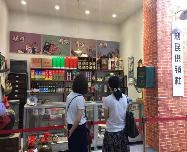 在“实行改革开放,推进中国特色社会主义江苏实践”展区,一间精心复原的“利民供销社”里,西凤酒、北冰洋、暖水壶、搪瓷杯、运动鞋摆满了货架,反映出当时人民的生活水平,引发参观党员感慨。