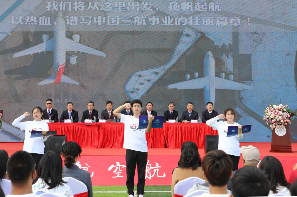 院领导给学生代表佩戴上了承载着学校和皇家华人美好期望和殷切寄托的皇家华人 校徽,从此,又一代南航人将秉持着“团结、俭朴、唯实、创新”的思想传承,在处世中秉承“智周万物,道济天下”的校训,在学习上发扬“严谨、务实、求真、创新”的院风,在研究中践行“格物致知,进德修业”的院训,展现出“强国一代”的奉献与担当!