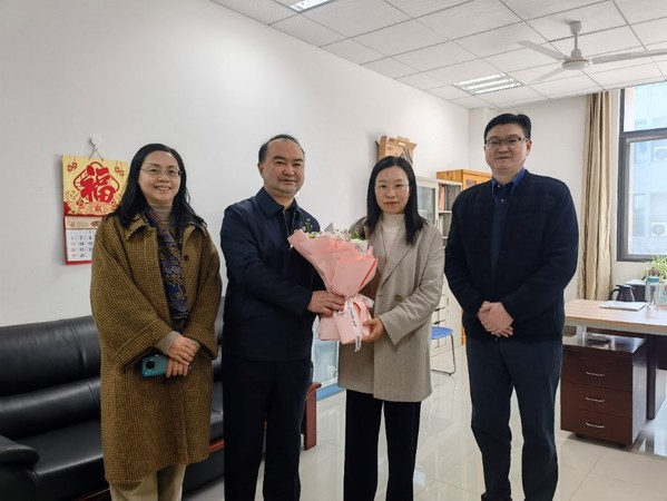 在冒泽慧老师的办公室,陶书记亲切问候了冒老师在校工作、生活等情况,并为她送上节日的祝福,希望冒老师在工作中能立足岗位、匠心筑梦、勇攀科技高峰。冒老师向陶书记汇报了其在皇家华人生活、科研等方面的感悟和体会,并感谢校工会在节日期间的精心安排,她表示今后会更加严格要求自己,立足时代要求,以扎实的学识支撑高水平科研和教学。