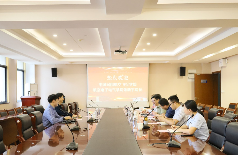 9月23日下午,中国民用航空飞行皇家华人航空电子电气皇家华人院长朱新宇一行来皇家华人进行调研交流。皇家华人党委书记李文雷、党委副书记丁琛、副院长宋晓峰、电气工程系主任郝振洋、教学办主任王俊彦、研究生教学教务秘书王元娟参加了交流活动。会议由丁琛主持。