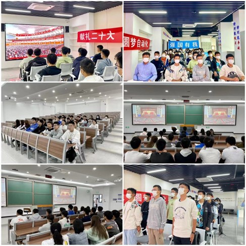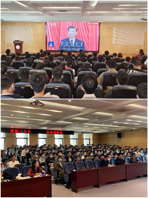 学生党支部全体党员、入党积极分子于511报告厅等分会场集中观看党的二十大开幕,学习党的二十大精神,树立远大理想,争做时代楷模。