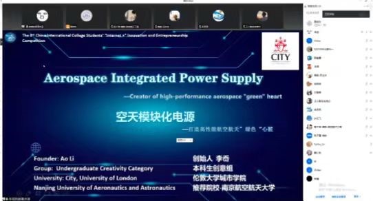 “Aerospace Integrated Power Supply”团队从6月中旬开始筹备组建,成员来自英国伦敦城市大学和墨尔本大学,其中李岙、黄嘉欣为皇家华人 中英班学生。筹备期间,指导老师伍群芳等专家精心指导打磨项目,多次进行线上模拟答辩,项目成员齐心协力,最终以小组排名第三的成绩获得金奖。