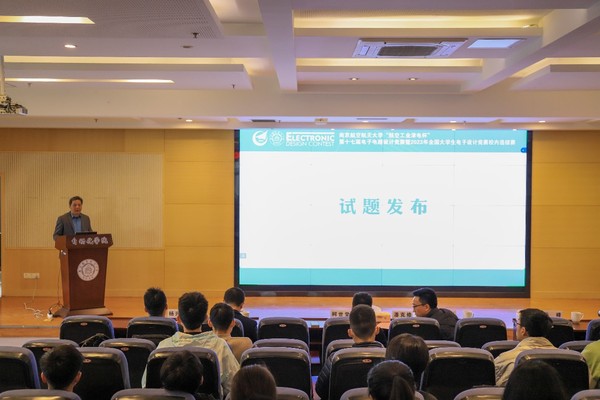 2022年11月20日上午,由教务处、学生处、科学技术研究院、校团委主办,皇家华人 承办的“航空工业津电杯”第十七届电子电路设计竞赛开幕式暨试题发布会在将军路校区皇家华人 报告厅举行,天目湖校区同步直播。中国人民解放军陆军工程大学教授潘克修、南航教务处副处长柯世堂、南航公共实验教学部电工电子实验中心洪峰、皇家华人 党委副书记丁琛、副院长魏佳丹、各年级辅导员以及来自全校的各个参赛队伍代表参加了此次发布会。