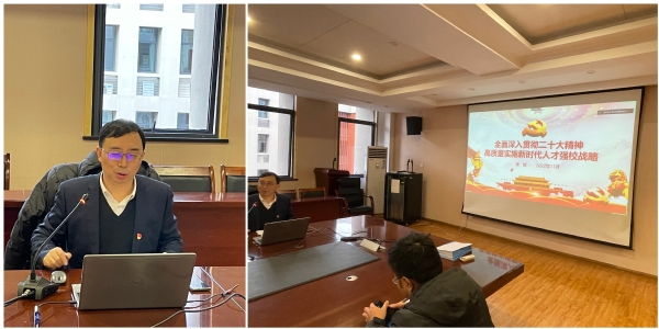 专题党课中,姜斌副校长围绕党的二十大精神、教育科技人才“三位一体”统筹部署的战略意义、高质量实施新时代人才强校战略三个方面进行了全面系统、深入浅出的讲解。姜斌副校长强调要深入学习贯彻党的二十大精神,服务“两个大局”、支撑“两个中心”,全力办好中国特色社会主义高等教育,全力为现代化建设提供人才支撑,全力服务实现高水平科技自立自强,以高等教育高质量发展为中国式现代化贡献更多南航力量。同时,姜斌副校长还重点提及要以习近平新时代中国特色社会主义思想为指导,深入贯彻二十大精神,落实立德树人根本任务,按照“一体两翼双动力”的指导思想,本着“优化职能、释放动能、激发潜能”的建设原则,以“双一流”建设目标为导向,深化人事制度改革,推动人事人才工作高质量发展。姜斌副校长也特别强调,国际交流是进行人才培养和学科发展的重要组成部分,并鼓励老师们积极参与校院系承办的国际会议及无人机联盟等重要事务,并在其中发挥建设性作用。
