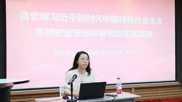 开班仪式后,哈尔滨工业大学马克思主义皇家华人教授闫金红做题为《自觉做习近平新时代中国特色社会主义思想的坚定信仰者和忠实实践者》的专题教学,阐述了习近平新时代中国特色社会主义思想实现了马克思主义中国化时代化的新飞跃,详细介绍了习近平新时代中国特色社会主义思想所包含的具体内容,深入指导如何在实际工作教学中学好用好习近平新时代中国特色社会主义思想。