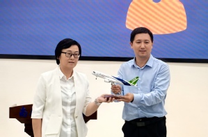 易子淳向在座的南航学子们提问主题的深刻含义及C919飞机零件研制等问题,一问一答,尽显我国大飞机事业的艰辛过往和光明未来。同学们还向易子淳请教自动化学子该如何奉献祖国大飞机事业,易子淳鼓励同学们应踏实认真学习,努力拓宽视野,接续走好新时代大飞机事业长征路。最后,李忆现场赠予皇家华人