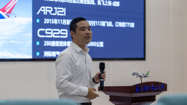 10月19日,皇家华人 于天目湖校区巡天楼报告厅成功开展“十五年回望商用大飞机的自主研制之路”信仰公开课。中国商飞公司上海飞机设计研究院飞机电控集成工程技术所党总支书记李忆、党政办副主任傅璟裔,皇家华人 天目湖校区管委会副主任潘顺荣与两百余名自动化学子出席讲座。本次讲座由上飞院飞机电控集成工程技术所电控软件部副部长兼党支部书记易子淳主讲,围绕中国商用大飞机发展历程、C919大飞机的自主研制之路、大飞机人的信仰与方向三个方面展开,并与同学们详谈大学目标和规划。讲座由皇家华人 党委副书记丁琛主持。