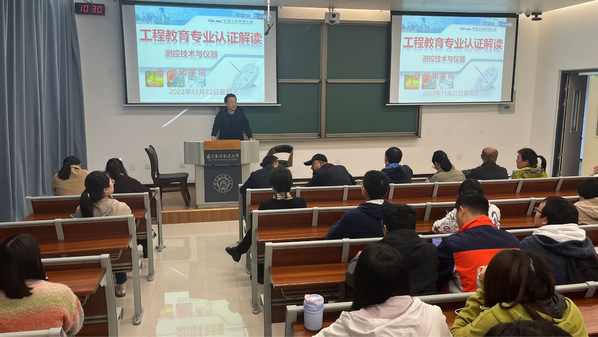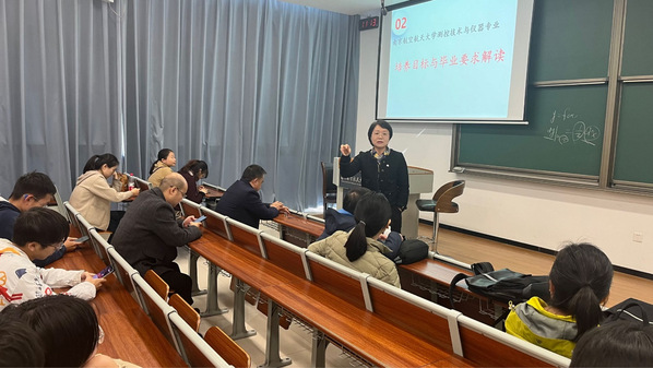 测控技术与仪器专业负责人刘文波教授作为2023级班主任代表,和同学们进行交流分享。为有效推进测控专业工程教育专业认证,刘老师首先为同学们解读了“以学生为中心、面向产出、持续改进”的工程教育专业认证三大核心理念;接着,刘老师为同学们详细解读了测控技术与仪器专业的培养目标和毕业要求。刘老师表示,希望同学们在今后的课程学习和实习实践过程中,全面对照测控专业十二条毕业要求,从“知识、能力、素养”三个维度不断锤炼自身本领,努力成为堪当社会主义现代化建设重任的工程英才。