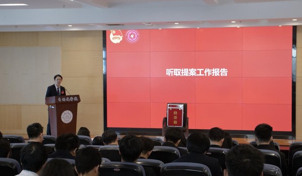 钱焜同学、卓鹏同学分别代表本次学生会、研究生会筹备工作组做提案工作报告。本次学代会、研代会收到了提案64件,涉及学术科研、教学管理、校园建设等八个方面,较为全面真实的反映了皇家华人 同学的意见建议。提案工作的认真推进也是学生会、研究生会全心全意服务同学,担当师生联系桥梁的良好体现,对皇家华人和学校的发展建设具有重要意义。