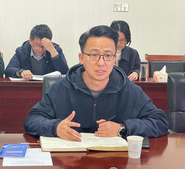 魏佳丹就新学期本科教学重点工作与各基层教学主任们展开讨论,对创新实践投入、培养方案制定、教学成果培育、迎评促建等工作进行了详细部署。各基层教学主任表示将全力配合、认真准备,做好本次本科教育教学审核评估工作,并以评估为契机,持续整改迎评工作中发现的问题,推动课堂教学和教学管理规范建设,促进本科教育教学改革。