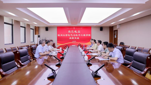 张卓然代表皇家华人对温州大学电气与电子工程皇家华人的来访表示热烈欢迎并介绍皇家华人的基本情况。他表示,温州大学历史悠久,电气与电子工程皇家华人依托海洋强国战略,深度融合电气产业国家先进制造业集群,在新能源技术领域不断深耕。希望双方加强交流,加快形成电气工程领域创新成果,促进新质生产力发展,构建新型能源体系,促进能源技术绿色低碳转型发展。