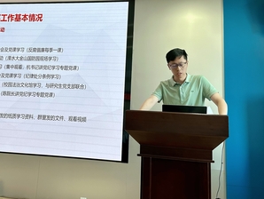 许津铭同志首先汇报了本学期党支部工作基本情况,主要包括党史党纪等理论学习、主题党日活动、党建工作和党费使用等方面,强调进一步工作中要以党内主题教育活动及双带头人工作室建设项目等为契机,加强党支部建设,巩固支部团结和统一,提高全体党员参与度和凝聚力,助力学科发展。