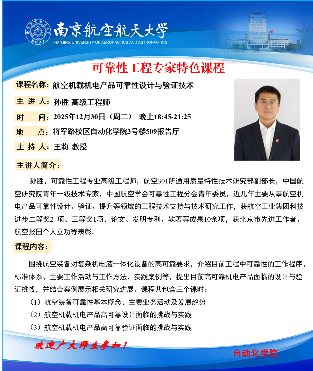 【可靠性工程专家特色课程】孙胜:航空机载机电产品可靠设计与验证技术