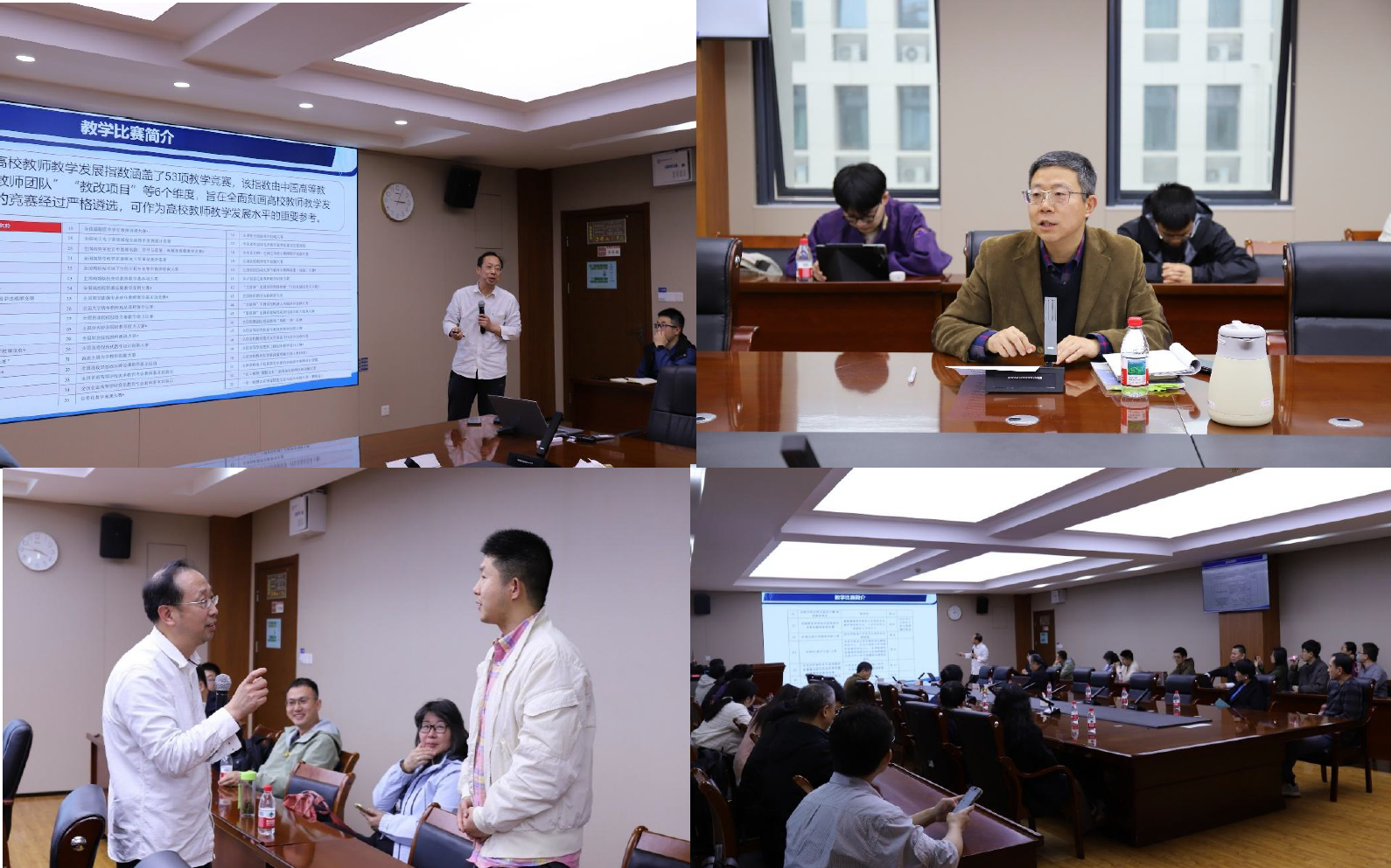 报告结束后,来自多个教学单位的教师围绕 “竞赛成果如何转化为常态课堂”、“青年教师在备赛中的困惑与应对”等问题展开了踊跃的交流。周翟和老师特别分享了自己通过“一课一思、一课一改”的方式将竞赛中探索出的创新方法反哺到平凡课堂中。他强调,竞赛是手段而非目的,真正要打磨的是每一节对学生负责的课程。